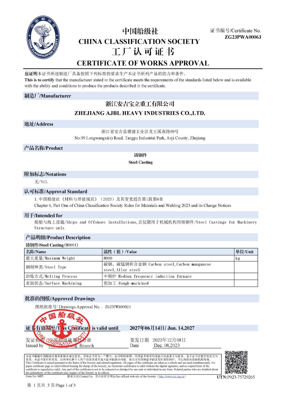 CCS class certificate